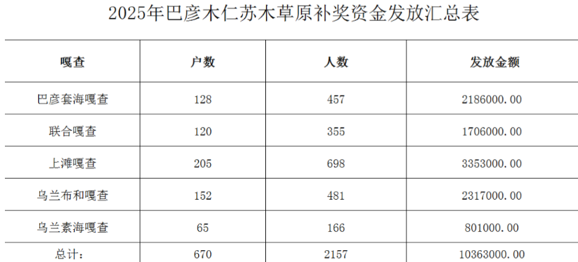 【两区动态】巴彦木仁苏木完成2025年度草原奖补资金发放工作